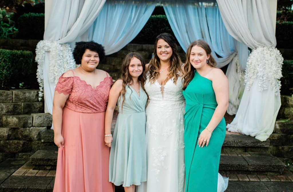 My mom and dad were married shortly after I was born and divorced by time I was 2 so I am the only child between them. My mom went on to have two more children and my dad and step mom had one child. Moral of the story is I’ve been blessed to be the big sister to three beautiful little girls that aren’t so little anymore😩 and on my wedding day I was bound and determined to finally get them all in a photo.